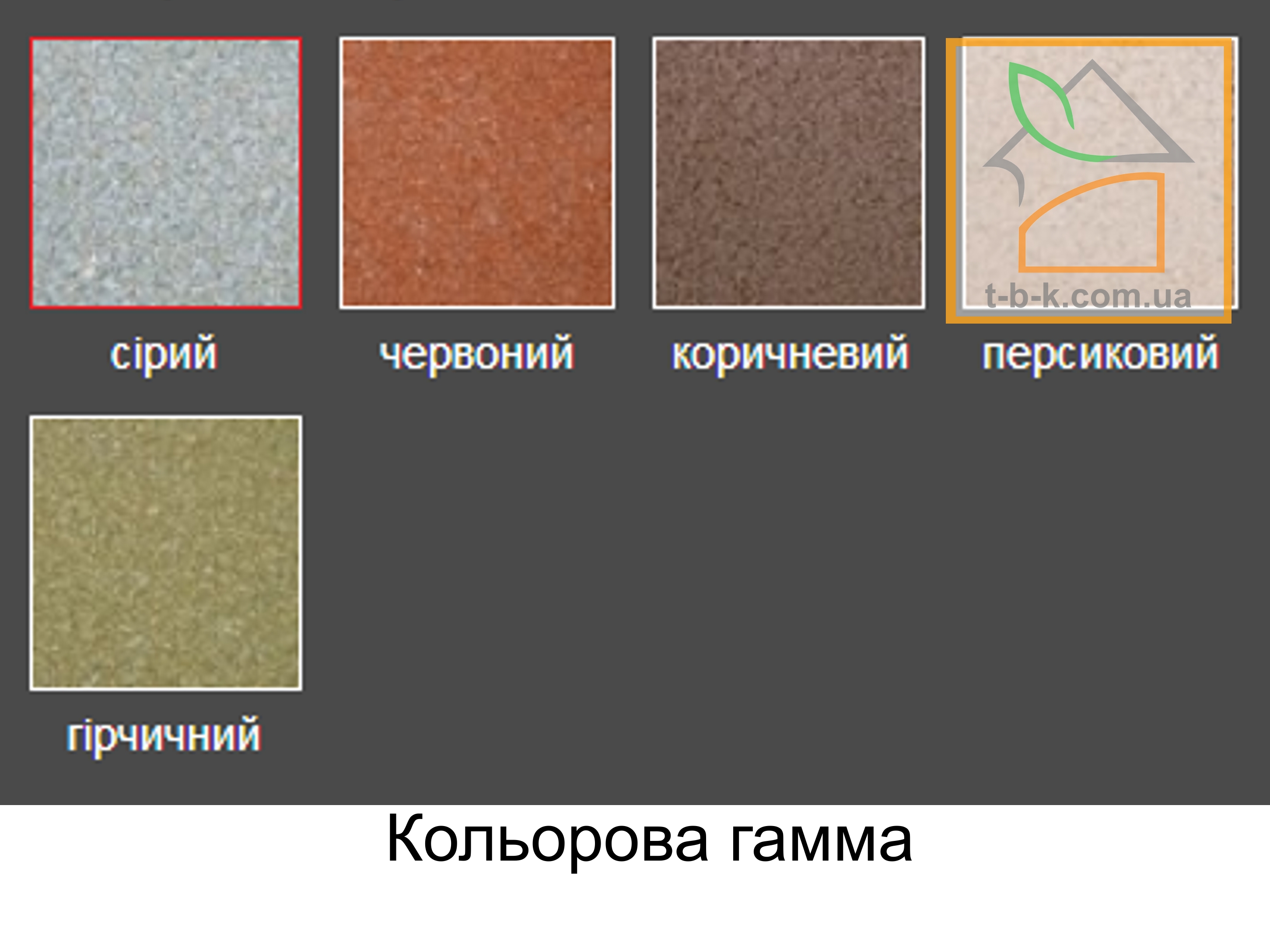 | Колір | Сірий Персиковий Коричневий Червоний Гірчичний Чорний Білий Жовтий Помаранчевий |
